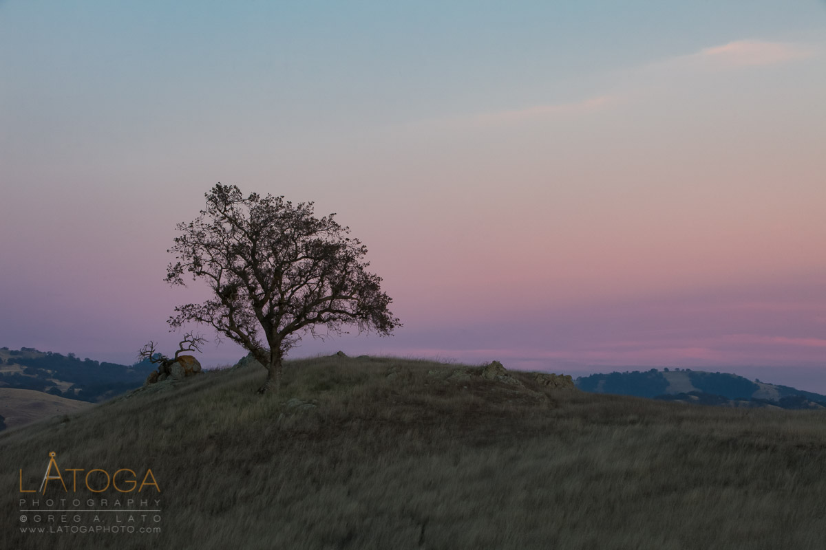 A short 20 minute drive from Silicon Valley (heading east) is the Sierra Vista Open Space Preserve. in the foothills east of San Jose, the trail head is almost at the crest of the first set of foothills. With an amazing sunset view of the South Bay Area, it also offers wilderness if you just look east. If you have any interest in nature photography and you live in California, it seems like you eventually start hunting for the perfect loan oak tree photo. This is not my first oak tree photo and I’m sure not my last.